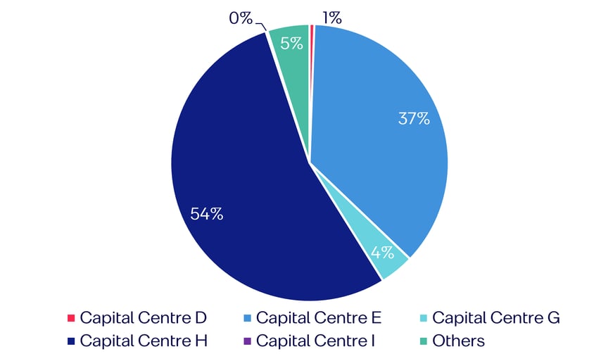 The covered bonds (ROs) in Capital Centre I carry a fixed interest rate. All loans have a term of 20 to 30 years and are match-funded throughout the loan term. Until 2014 bonds in Capital Centre I were also used to fund residential mortgage loans.