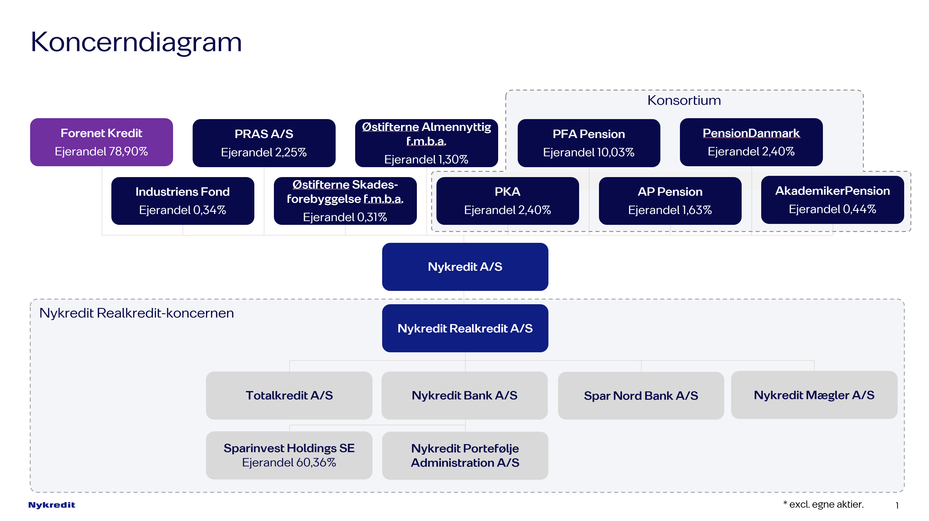 Nykredit Realkredit A/S er 100% ejet af Nykredit A/S, hvis formål alene er at eje Nykredit Realkredit A/S.